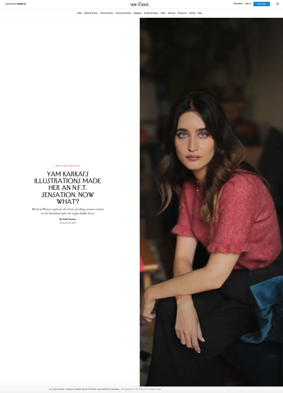 “Parekh serves as a liaison to such fans as Wheeler and Sakari Smithwick, a young New York chef who produces a spinach, pineapple, apple, and lemon juice branded with his “cyber green” WoW. Smithwick, who met the World of Women team at VeeCon, told me that he became involved in web3 after the Michelin-starred restaurant where he’d been cooking shut down. “For me, it’s a movement toward ownership, toward equal opportunities,” he said.”
